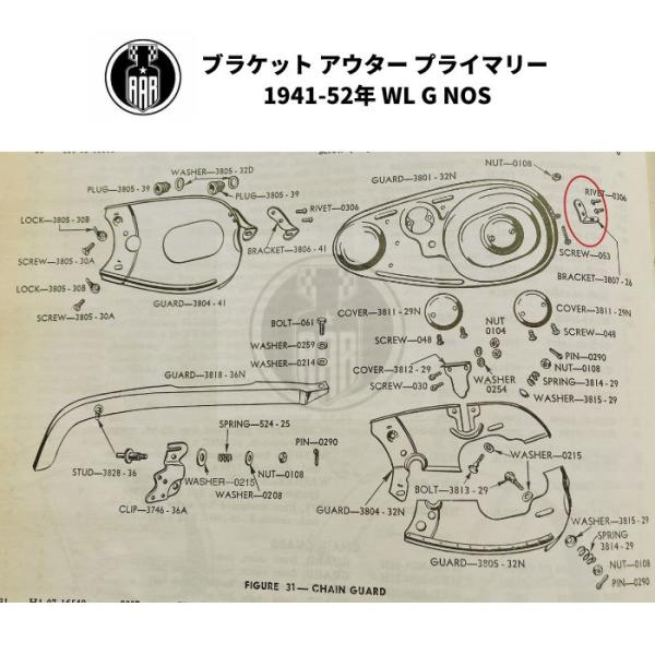 ブラケット アウター プライマリー ハーレーダビッドソン 1941-52年 WL G NOS