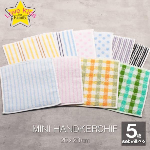 ラッピング 無料 ミニハンカチ 選べる 5枚 A〜D セット キッズ 吸汗 吸水 まとめ プレゼント 夏祭り 景品 子供会 メール便 ポイント消化 綿100 1000円ポッキリ