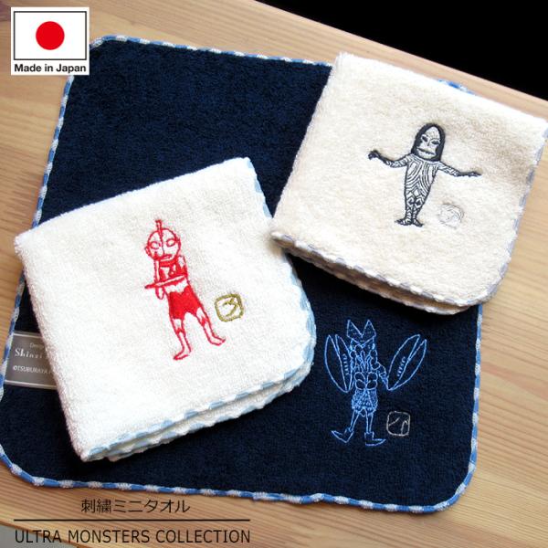 ミニタオル ハンカチ 23cm ウルトラマン バルタン星人 ダダ 刺繍 綿素材 日本製 かわいい タオルハンカチ ダブルスリー