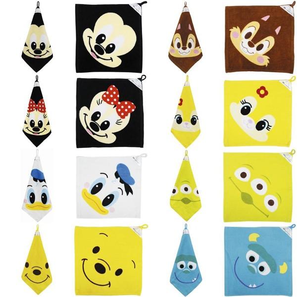ディズニー 顔柄 ループ付タオル 1枚(全12種)ループタオル・ミニタオル・ハンドタオル ひも付