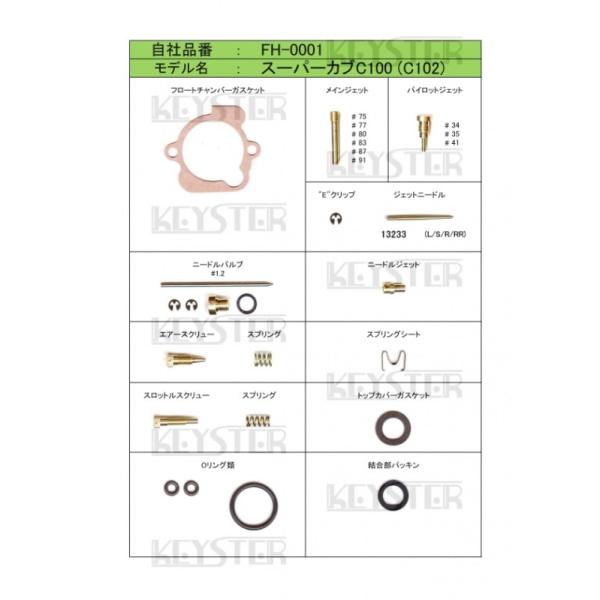 【キースター】燃調キット スーパーカブC100 / C102用キャブレター オーバーホール&セッティングパーツセット(FH-0001)