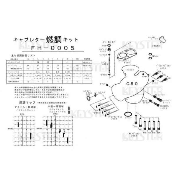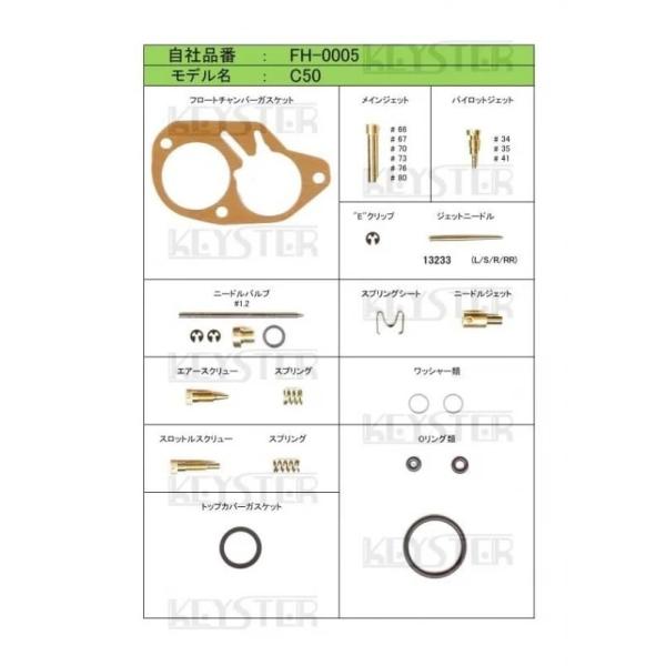 【キースター】燃調キット スーパーカブC50(縦キャブ)用キャブレター オーバーホール&セッティングパーツセット(FH-0005)