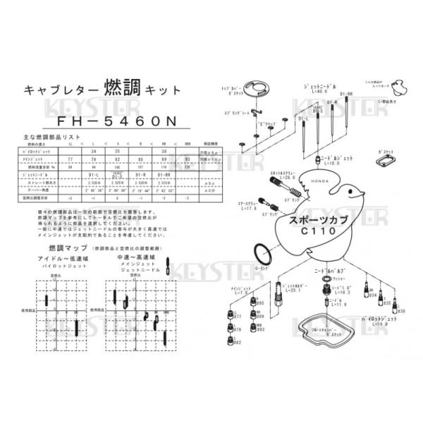 【キースター】燃調キット スポーツカブ C110用キャブレター オーバーホール&セッティングパーツセット(FH-5460N)