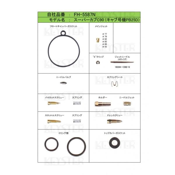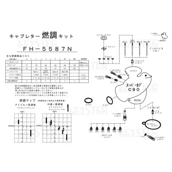 【キースター】燃調キット スーパーカブ90/C90(適合キャブレター号機:PB25D)用キャブレター オーバーホール&セッティングパーツセット(FH-5587N)
