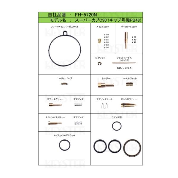 【キースター】燃調キット スーパーカブ90/C90(適合キャブレター号機:PB48)用キャブレター オーバーホール&セッティングパーツセット(FH-5720N)