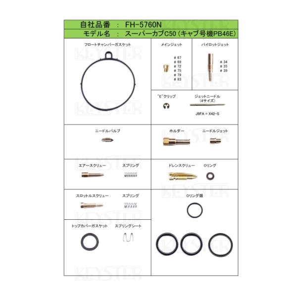 【キースター】燃調キット スーパーカブ50/C50 丸目タイプ用キャブレター オーバーホール&セッティングパーツセット(FH-5760N)