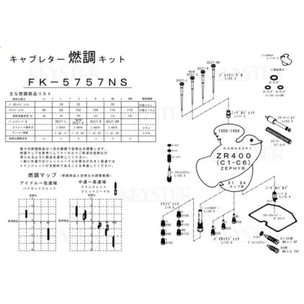 KEYSTER キースター キャブレター燃調キット オーバーホール&セッティングパーツセット Zephyr(ゼファー)400/ZR400 KAWASAKI カワサキ 吸気関連 エンジン