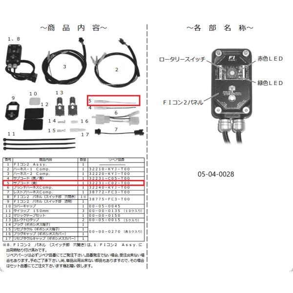 SP武川 SPタケガワ 【補修部品】サブコード(黄)/FIコン2 その他インジェクション・ECU関連オプション・補修部品 吸気関連 エンジン
