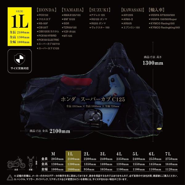 Barrichello(バリチェロ) バイクカバー 1Lサイズ 高級オックス300D使用 厚手生地 防水 PCX Ape シグナスX [ブラック] [シルバー]
