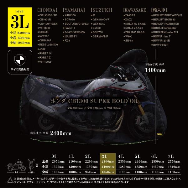 Barrichello(バリチェロ) バイクカバー 3Lサイズ 高級オックス300D使用 厚手生地 防水CB1300 Z1 [ブラック] [シルバー]