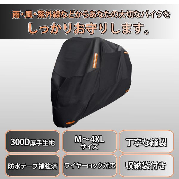 バイクカバー 厚手 300D 大型 原付 防水 小型 M L XL 2XL 3XL 4XL 丈夫 防塵 防雪 撥水 盗難防止 防風ベルト付き 収納袋付きバイク カバー 車体 高品質 爆買