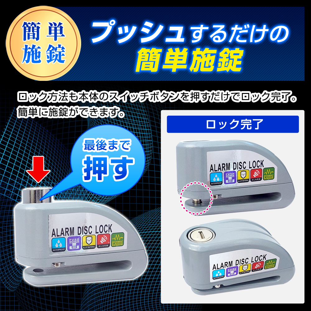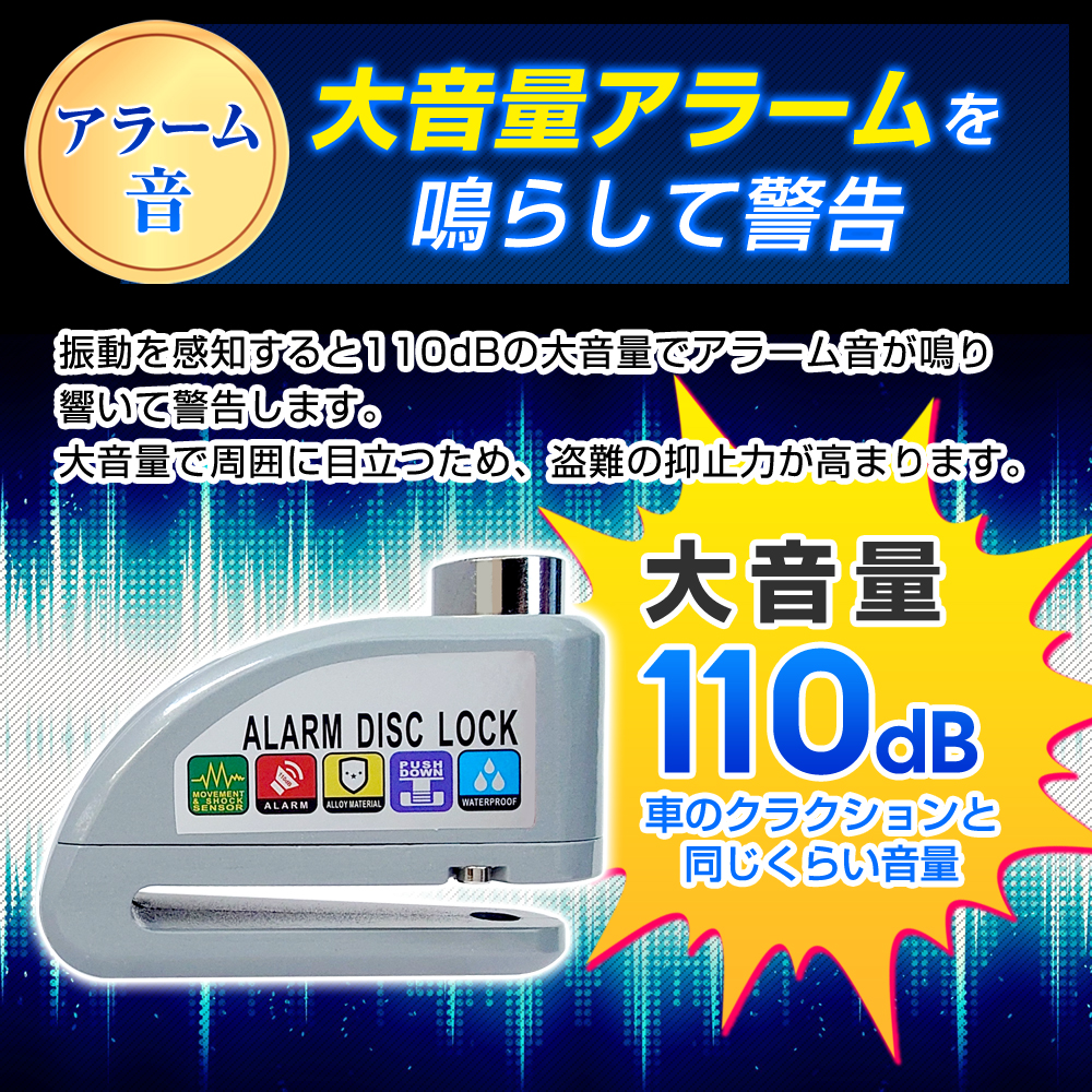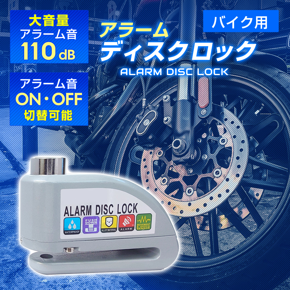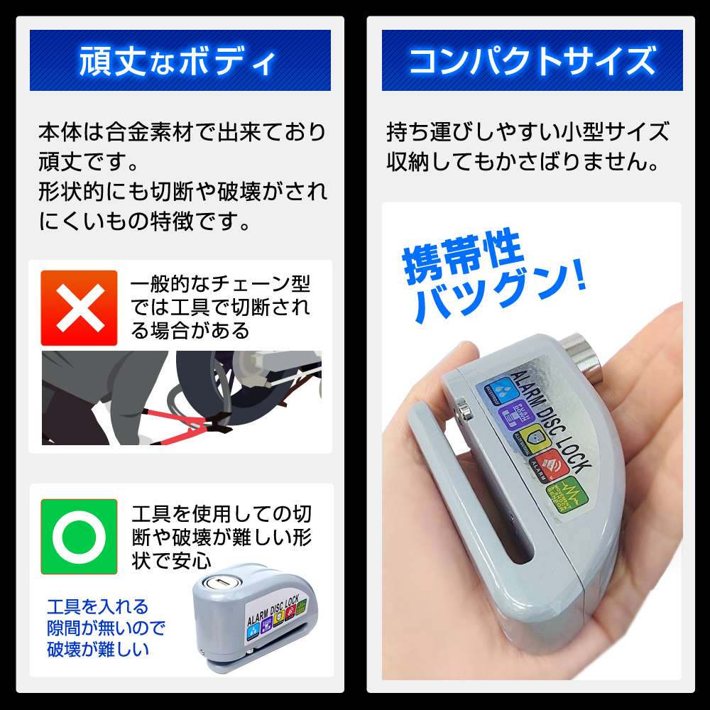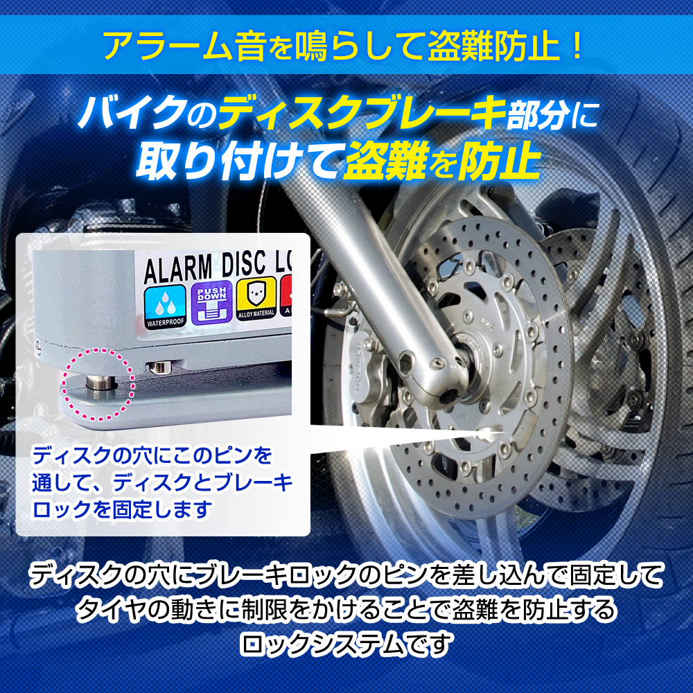 バイク 防犯 盗難防止 アラーム ディスク ロック 振動感知 大音量アラーム ブレーキディスクロック セキュリティ 盗難グッズ 頑丈 コンパクト 携帯