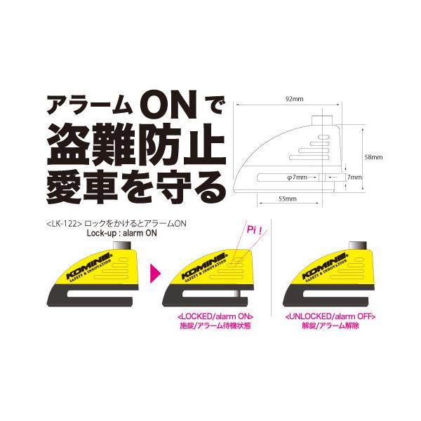 KOMINE コミネ LK-122 リマインダーアラームディスクロック ディスクロック 保管・盗難防止用品