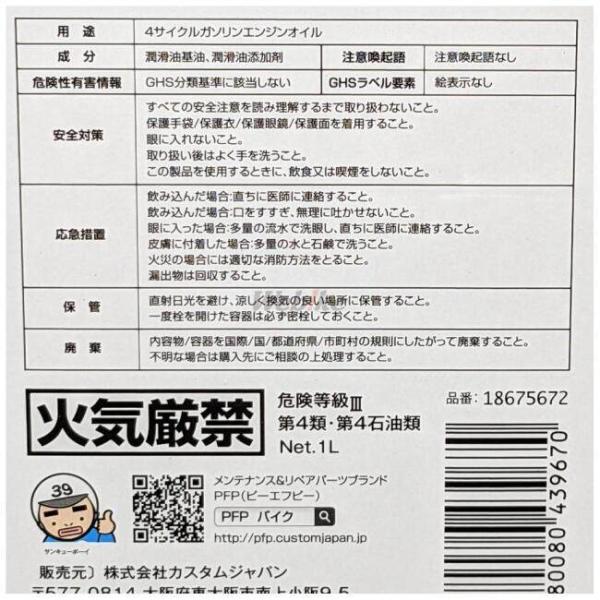 PFP ピーエフピー エンジンオイル for Harley-Davidson ハーレー用 【20W-55】【4サイクルオイル】 内容量:1L HARLEY-DAVIDSON ハーレーダビッドソン オイル