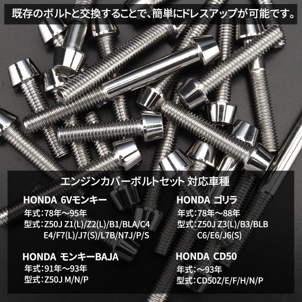 6Vモンキー ゴリラ CD50 エンジンカバー クランクケース ボルト 16本セット ステンレス製 ホンダ車用 シルバーカラー TB6088