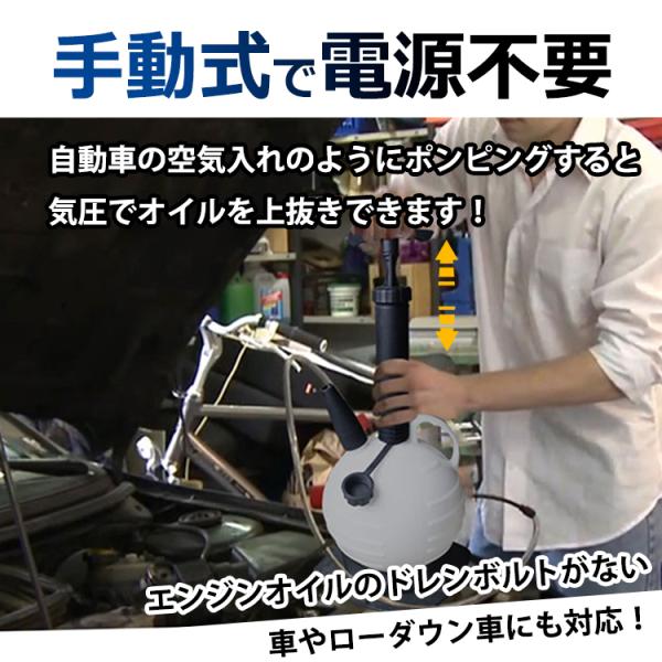 オイルチェンジャー 手動式 上抜き 6L オイル交換 軽量 車 バイク オートバイ トラック 農耕機 船外機 水槽 エンジン 気圧 ee336