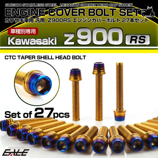Z900RS エンジンカバーボルト 27本セット カワサキ車用 CTCテーパーシェルヘッド ゴールド&焼きチタンカラー TB8176