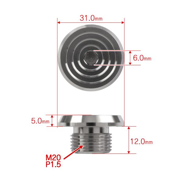 オイルフィラーキャップ M20 P1.5 六角穴 ステンレス製 マットシルバー 汎用 TH0494