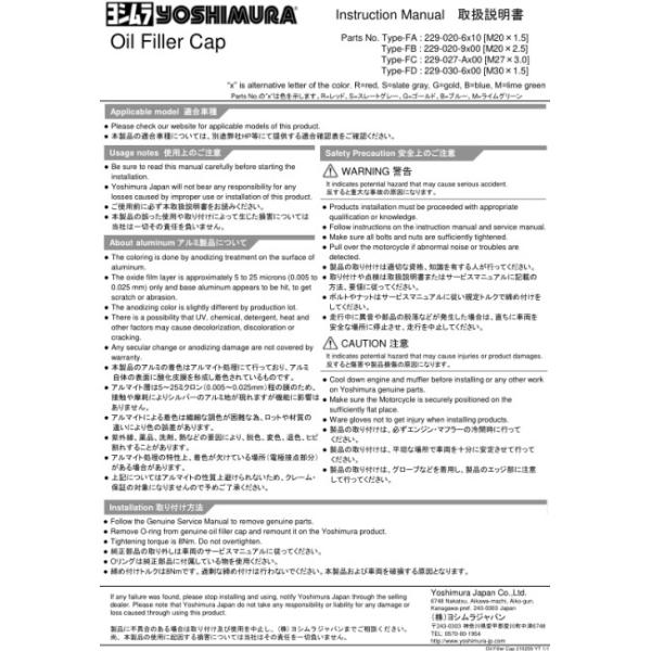 YOSHIMURA ヨシムラ オイルフィラーキャップ Type-FB カラー:スレートグレー HONDA ホンダ KAWASAKI カワサキ YAMAHA ヤマハ フィラーキャップ エンジンパーツ