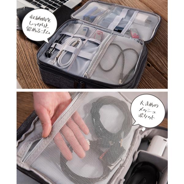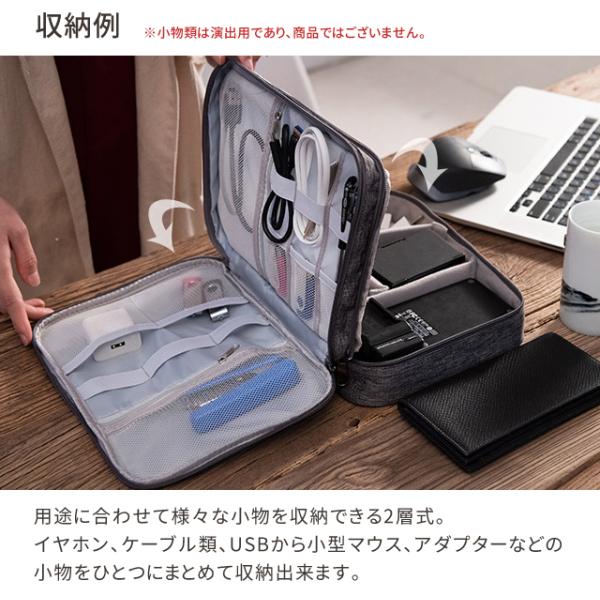 ガジェットポーチ 2層式 ケース デジモノ ケーブル 収納 OA 持ち運び トラベル 仕切り ゴムバンド付き 多機能 ポータブル GPT 1点迄メール便OK(gu1b351)