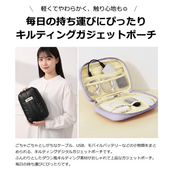 ガジェットポーチ 小物入れ ガジェットケース ポーチ デジモノ ケーブル 収納 ファスナー ポケット キルティング ダウン風 GPT 1点迄メール便OK(gu1c870)