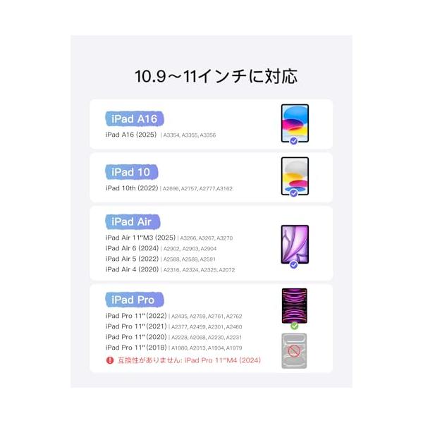 Inateck iPad A16 第11世代/第10世代用 軽量JIS日本語配列キーボードケース iPad Air 11インチ M3 2025/