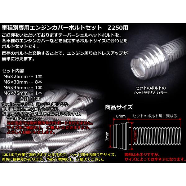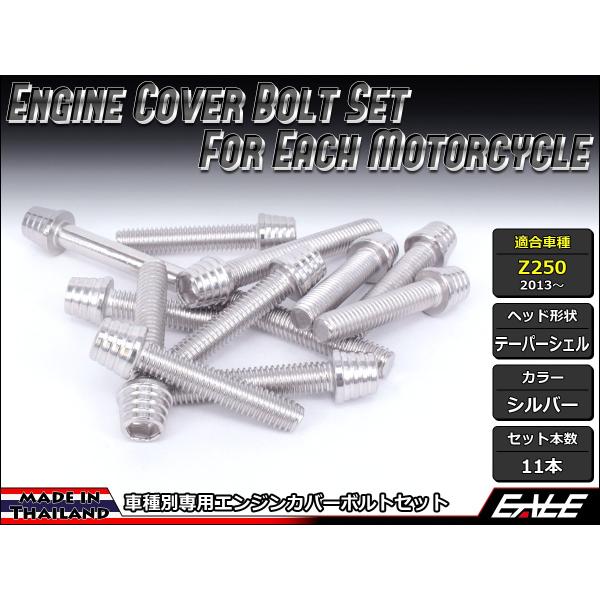 Z250(ER250) エンジンカバー ボルト11本set キャップボルト テーパーシェルヘッド シルバー TB8051