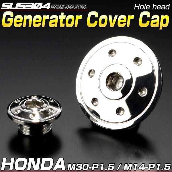 ホンダ車用 ジェネレータカバー クランク&ポイントホール キャップセット ステンレス製 ホールヘッド シルバー TH0287