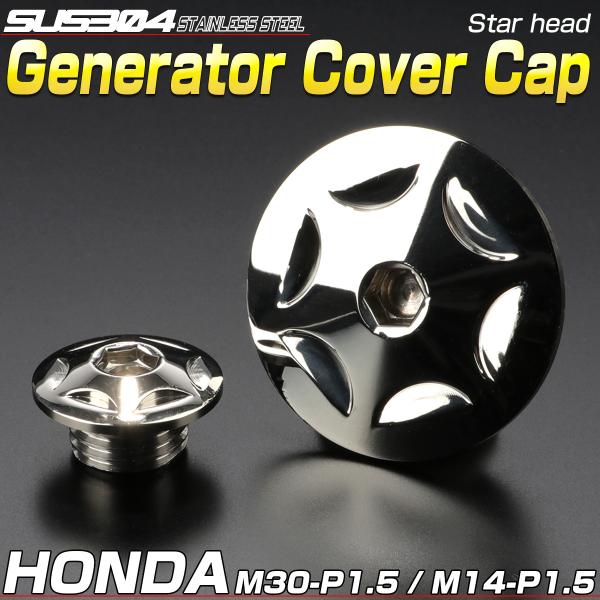 ホンダ車用 ジェネレータカバー クランク&ポイントホール キャップセット ステンレス製 スターヘッド シルバー TH0293