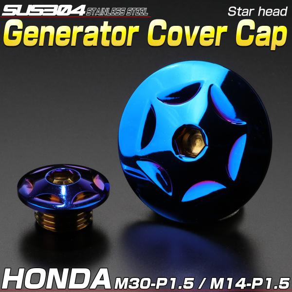 ホンダ車用 ジェネレータカバー クランク&ポイントホール キャップセット ステンレス製 スターヘッド チタン TH0295