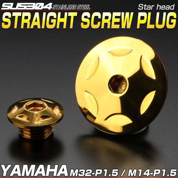 ヤマハ車用 ストレートスクリュープラグ クランク&ポイントホール キャップセット ステンレス製 スターヘッド ゴールド TH0297