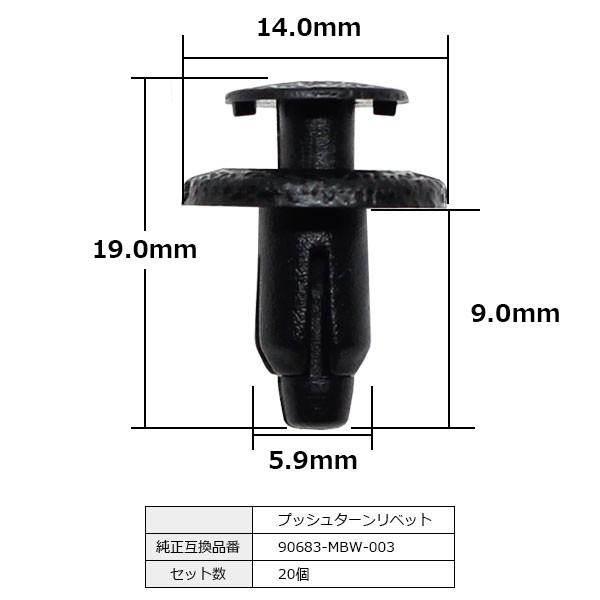 プッシュターンリベット クリップ ボディ リベット 純正品番 互換 90683-MBW-003 ホンダ 20個セット