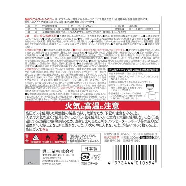 KURE(呉工業) 耐熱ペイントコートシルバー 300ml 金属パーツ用耐熱塗料 1065
