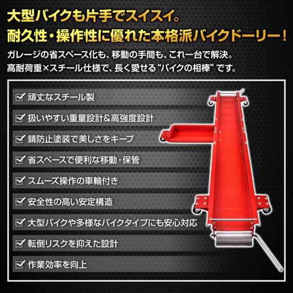 バイクドーリー メンテナンススタンド バイクスタンド バイク移動ツール バイク移動 バイク ドーリー キャスター 車庫 ガレージ スチール 錆防止 頑丈 丈夫 整備