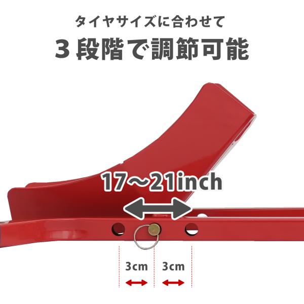 バイクスタンド フロントホイールクランプ タイヤ固定スタンド 組立式 レッド 17インチ〜21インチ対応 51616-R 組立参考図付き