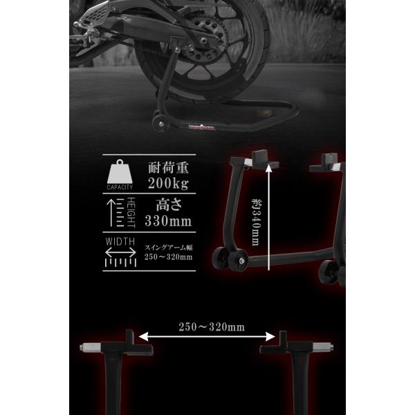バイクスタンド 後輪 リア メンテナンススタンド バイクリフト タイヤ チェーン 交換 モーターサイクル ブラック 黒 ブラック L型 極太パイプ 一体型 プロ仕様
