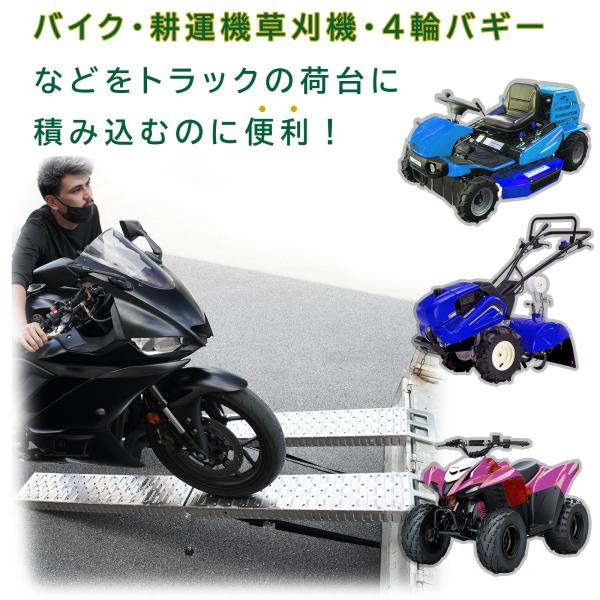 ラダーレール 折り畳みスロープ トランポ 191cm 最大耐荷重400kg スタンド ベルト付き 軽量 バイク 軽トラ 農機具 シルバー 銀 2本セット 51608-1