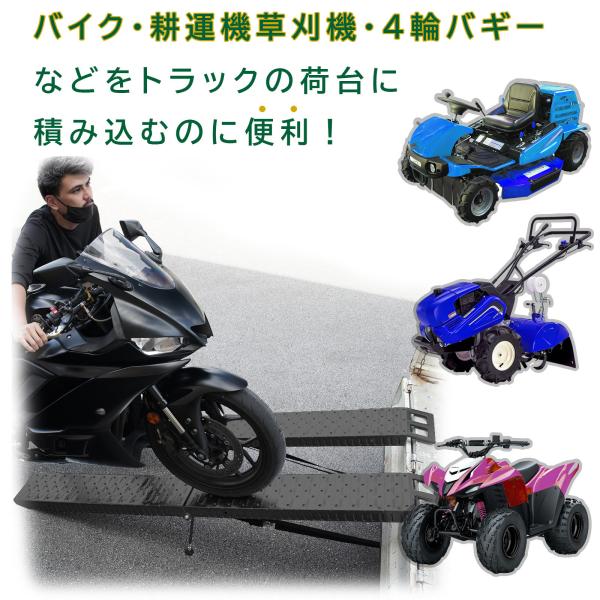 ラダーレール バイク 折り畳み スロープ ブラック トランポ 191cm 最大耐荷重400kg スタンド ベルト付き 軽量 軽トラ バギー 農機具 2本セット 黒 ニッケル鉄