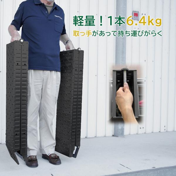 ラダーレール バイク 折り畳み ブラック スロープ トランポ 191cm 最大耐荷重400kg スタンド ベルト付き 軽量 軽トラ バギー 農機具