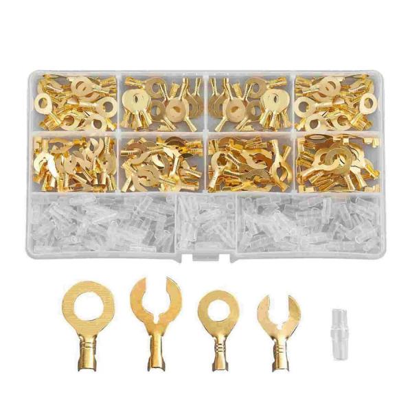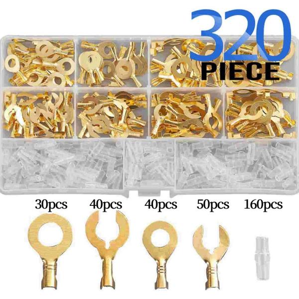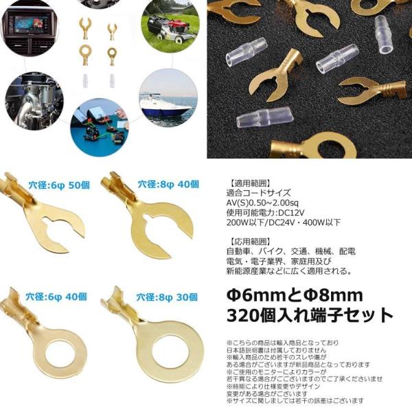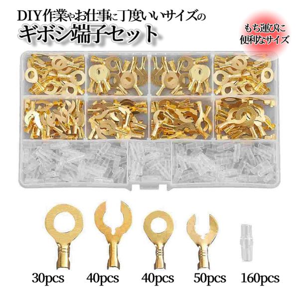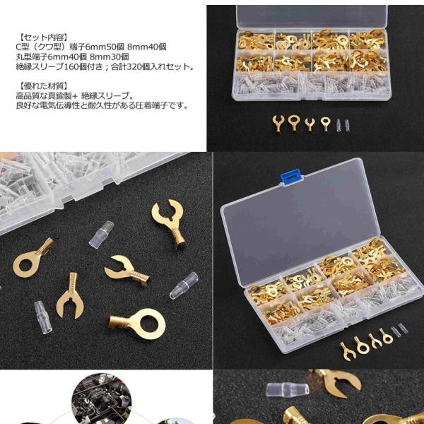 ギボシ 端子 320個 セット C型 6mm 8mm クワ型 丸型 絶縁 スリーブ 圧着 電気 配電 配線 加工 DIY 真鍮 裸圧着端子 ケーブル ラグ 自動車 車 バイク BLETANSI