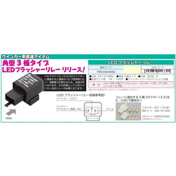 KITACO キタコ LEDウインカー対応フラッシャーリレー CT125ハンターカブ モンキー125 汎用 HONDA ホンダ その他配線部材・用品 スイッチ・ハーネス関係 電装系