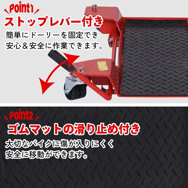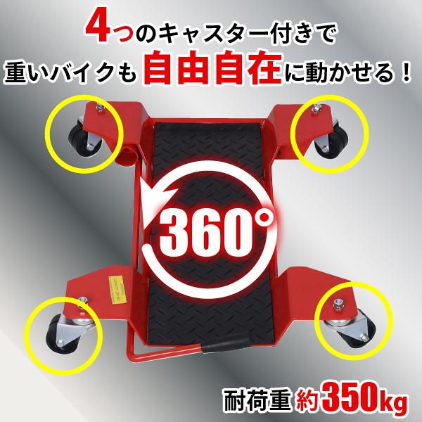 バイクドーリー センタースタンド バイク移動 バイク移動ツール 耐荷重350kg キャスター オートバイドーリー 簡単 滑り止め 車庫 ガレージ バイク 移動 工具