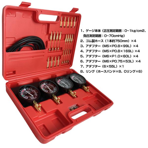便利グッズ 車 バキュームゲージ 工具 バイク アタッチメント ホース 4連 キャブ ストレート 4連バキュームゲージ セット メンテナンス 整備 キャブレター 同調