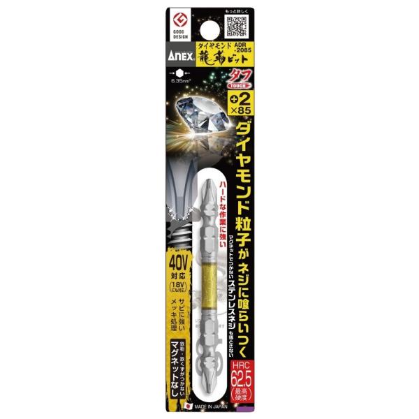 ANEX アネックス 両頭ダイヤモンド龍靭プラスビット タフタイプ #2 ドライバービット ハンドツール