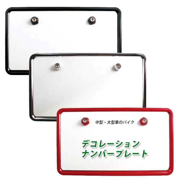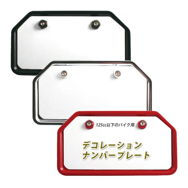 デコレーションナンバープレート ブラック・クローム・レッド(角型・山型)(125cc車以下用・中型・大型用)ライセンスボルト付き