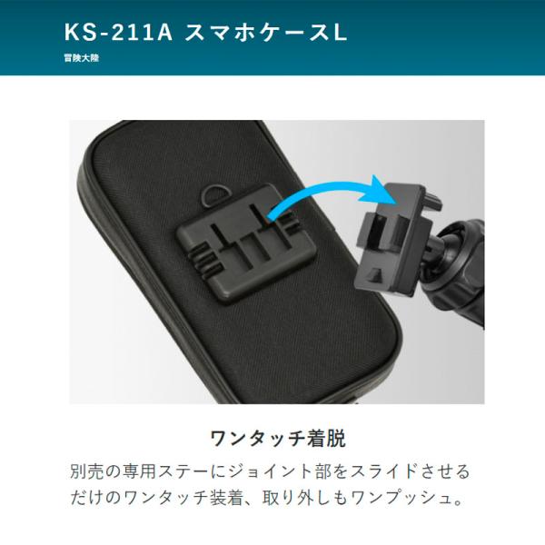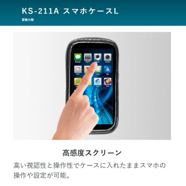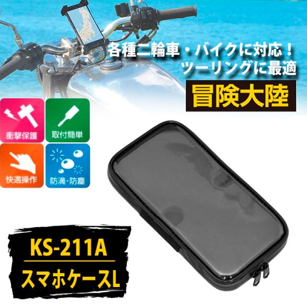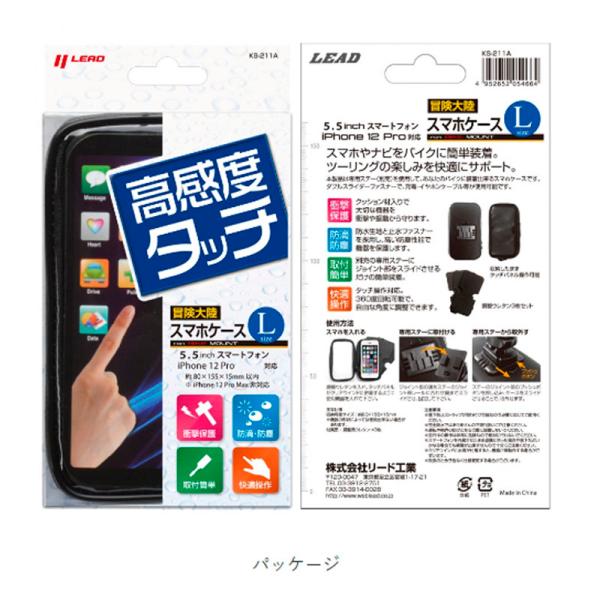 【冒険大陸】二輪用スマホケース Lサイズ 高感度タッチ 5.5インチ スマホPlus対応 リード工業 簡単取り付け KS-211A