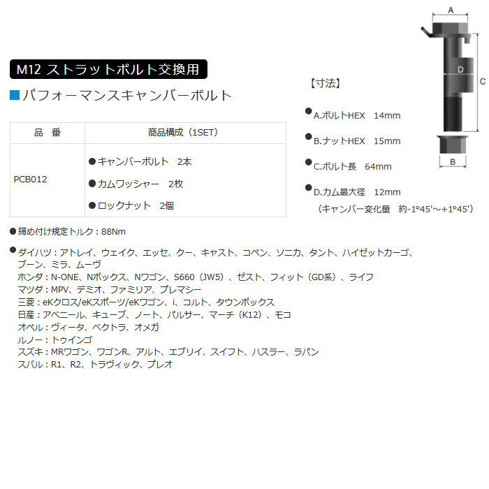 JIC キャンバー調整ボルト エブリィワゴン DA17W パフォーマンスキャンバーボルト 新品 2本