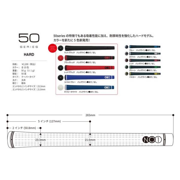 NOW ON ナウオン NO1グリップ 50シリーズ HARD ハードモデル 太め 硬め ゴルフ グリップ メンテナンス エラストマー ナンバーワン