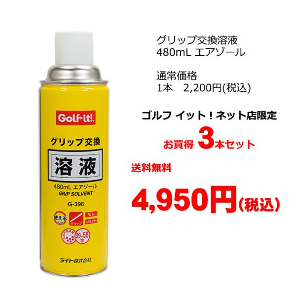 グリップ交換 グリップ溶液 エアゾール ゴルフ グリップ交換溶液 480mL エアゾールG-398 3本セット ゴルフ用品 ライト(LITE)NG-638