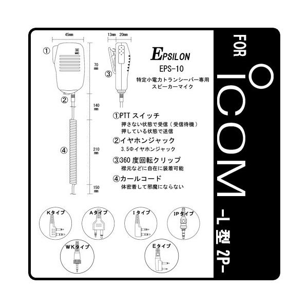 ICOM/アイコム用 特定小電力トランシーバー用 スピーカーマイク インカム EPSILON EPS-10I